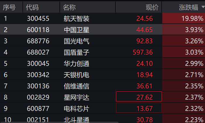 ,后直航天盘中净申购1100万元。线拉成分股航天智装涨停