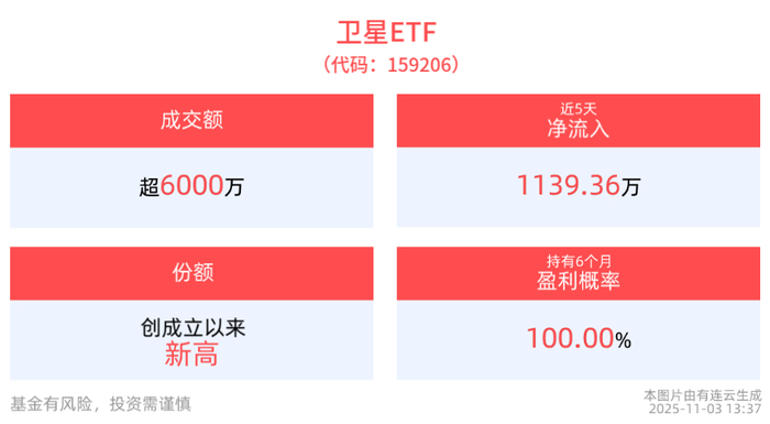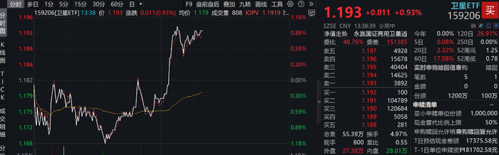 截至13 :38 ,卫星ETF(159206)上涨0.93%